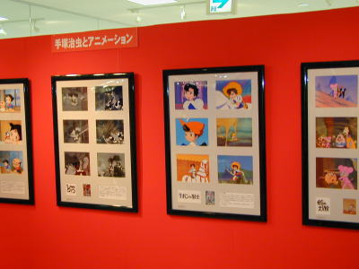 アニメの製作の過程を順番に資料をみせながら説明した展示。。