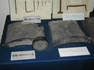 ●階段で2Fに上がると女中部屋・ゾーフ部屋へと続く(手前が女中部屋、奥がゾーフ部屋)。右は女中部屋に展示されていた瓦