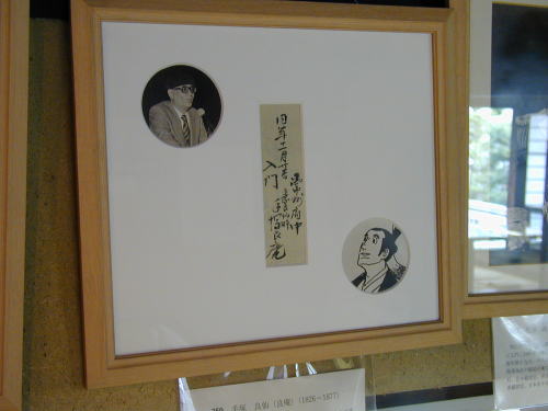 ●大部屋には、塾生ゆかりの品が展示されていて、手塚治虫の写真と先祖の良庵の原画も展示されている。